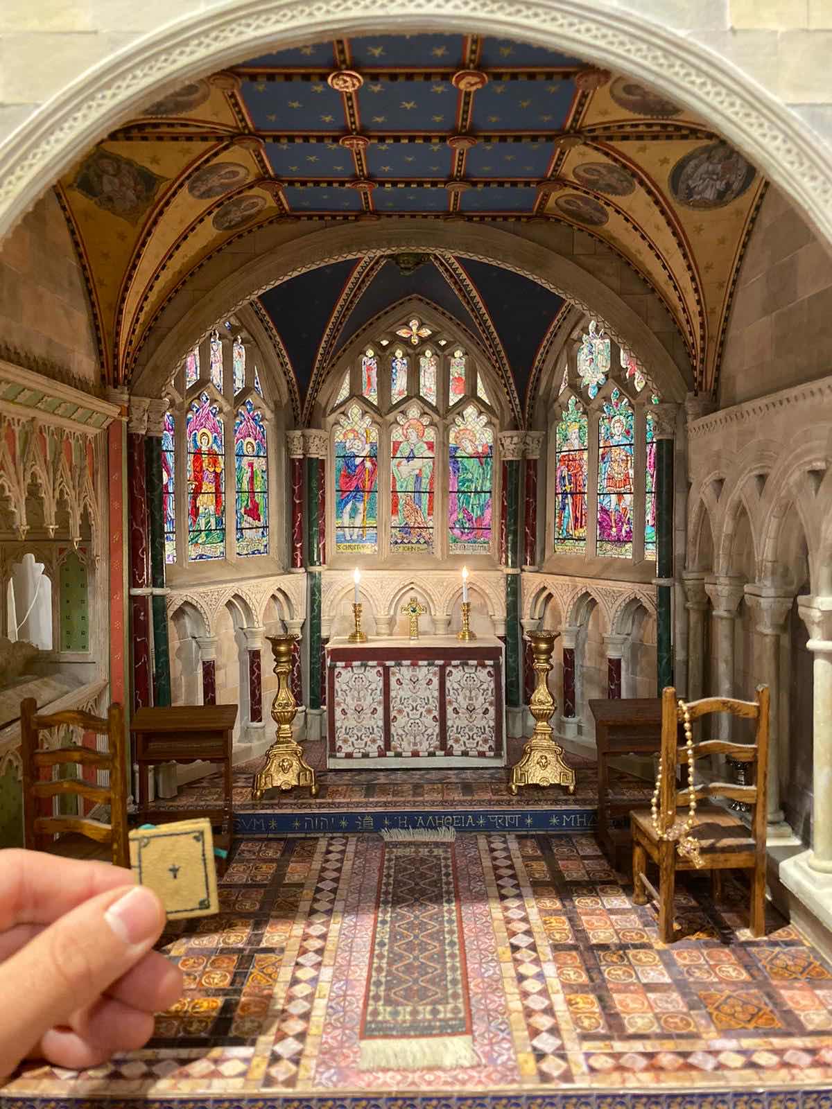 The bedroom, I should add, is really just a fantasy room of mine based on many red damask walled rooms in stately homes. But I have a portrait of Sarah Lethieullier above the mantelpiece in honour of her English dolls house in Uppark House.